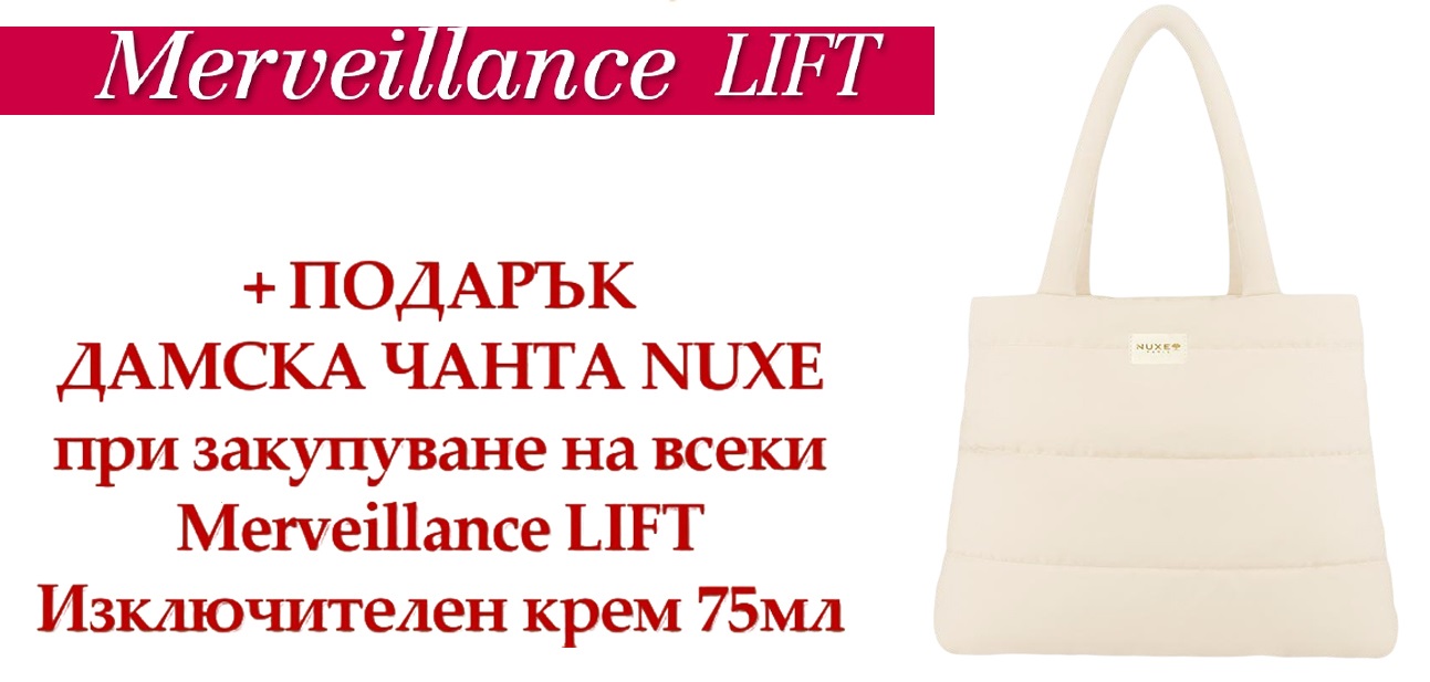 Изключителният крем за лице от Nuxe Merveillance Lift е луксозна 2-в-1 формула, предназначена за дневна и нощна употреба. Продуктът е подходящ за всички типове кожа. Експертната формула на Merveillance LIFT с мулти-коригиращо масло от водорасло в комбинация с ниацинамид, коригира бръчките, уплътнява, стяга, изравнява тена и озарява кожата на лицето. Той е перфектната дневна и нощна грижа, която ще стегне, подобри текстурата на кожата и подсили кожната бариера. С ултрачувствена нежна текстура, подходяща за всеки тип кожа и деликатен аромат, подсилващ елегантната чувствена женственост. Съдържа 95% съставки с натурален произход. Веган формула.